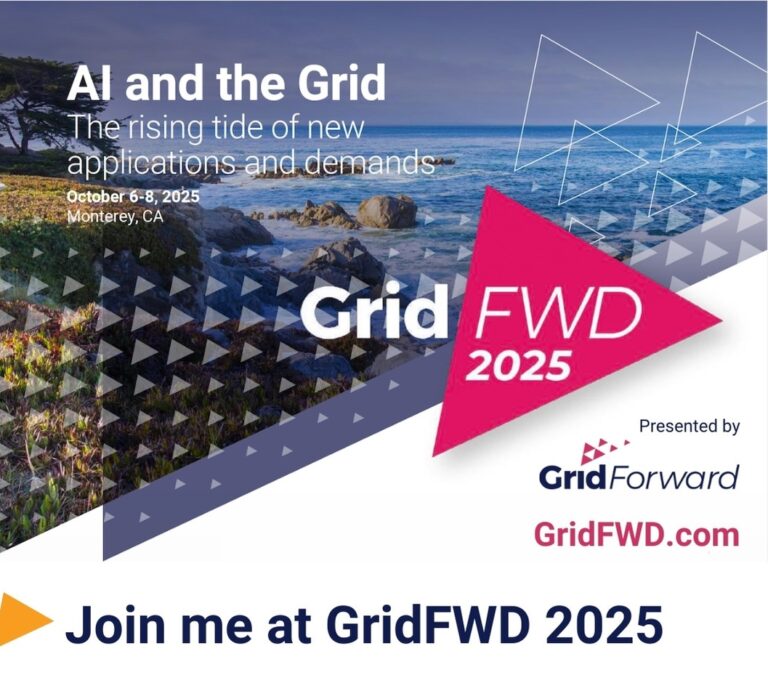 I am excited to be participating in GridFWD 2025 in Monterey, October 6-8. Come join in as we explore “AI and the Grid: The rising tide of applications and demands.”